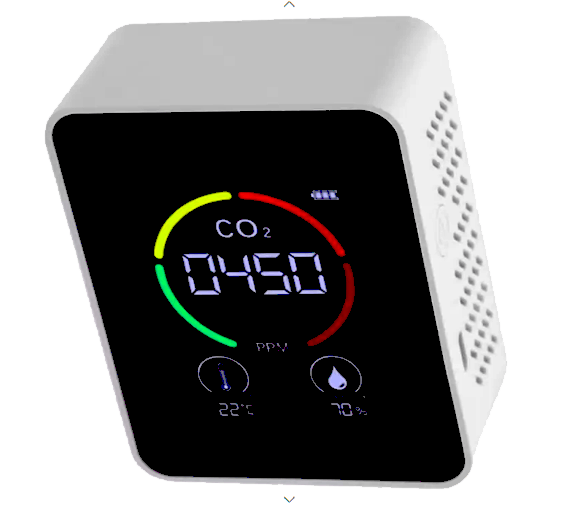 دستگاه دارای بازر هشدار هنگام وضعیت قرمز دی اکسید کربن است. همچنین چهار نشانگر رنگی (سبز، زرد، نارنجی و قرمز) میزان دی اکسید کربن موجود در هوا را نمایش میدهند و شما را از کیفیت هوا مطلع میکنند.